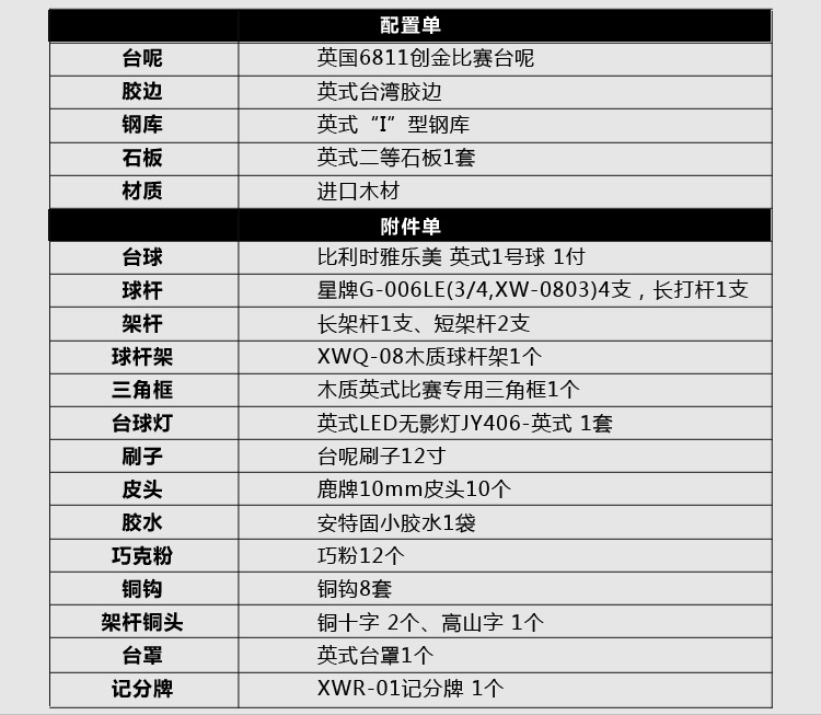 星牌台球桌英式斯诺克球台标准家用成人XW107-1